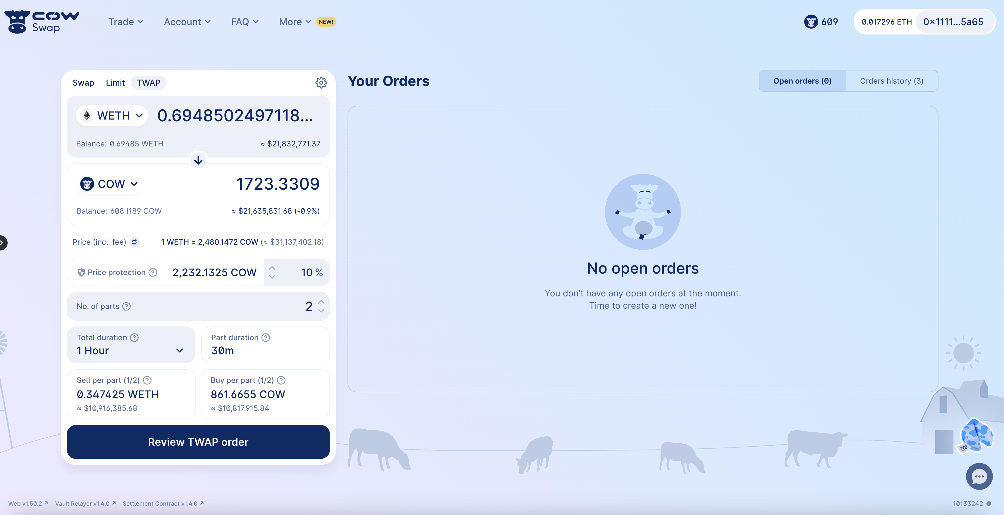 TWAP orders are a strategic approach for large trades, reducing price impact and securing better average prices. Try it out and let us know your experience at info@cow.fi!